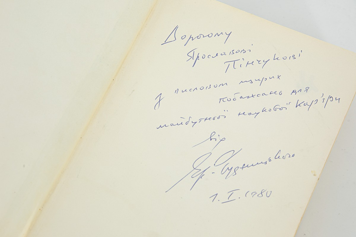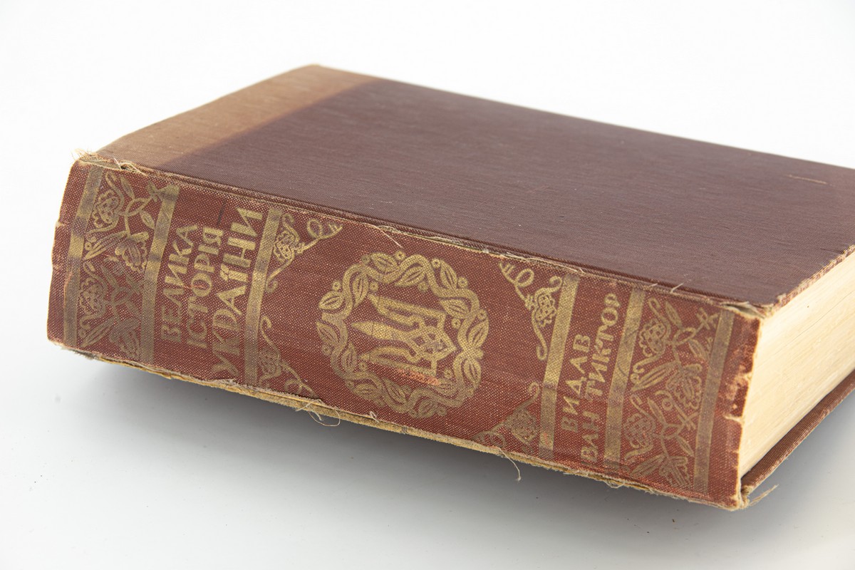 У цупкій обкладинці бордового кольору; на корінці – зображення тризуба, зазначено назву книжки та видавництво літерами золотистого кольору. На форзаці дарчий напис: «Дорогому Ярославові Пінчукові з висловом мирних побажань для майбутньої наукової кар’єри від Я. Рудницького. 01.01.1980». На титульній сторінці міститься штамп: "J. B. RUDNYC’KYJ COLLECTION from: Т. Дацків DONATION" («Я. Б. Рудницький колекція, від Т. Дацків пожертвування»); на 13, 51, 143, 287, 381, 503, 653, 809 с. та задньому форзаці – штампи "J. B. RUDNYC’KYJ COLLECTION" («Я. Б. Рудницький колекція»); на титульній, 9, 73, 127, 259, 393, 643, 725, 927 с. та задньому форзаці – штампи: ""SEEK WISDOM" Jaroslav R. Pinczuk. Personal Library" («"Шукати мудрість". Ярослав Р. Пінчук. Власна бібліотека»). Книжка має 968 сторінок, ілюстрації та карти.