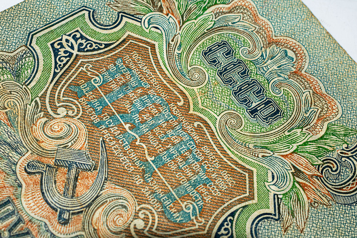 As part of the reform, new banknotes were issued in seven denominations, divided into treasury and bank notes. Treasury notes included denominations of 1, 3, and 5 rubles, while bank notes were issued in denominations of 10, 25, 50, and 100 rubles. The designs were created by Ivan Dubasov, Chief Artist of Goznak, the State Printing Office of the USSR.
