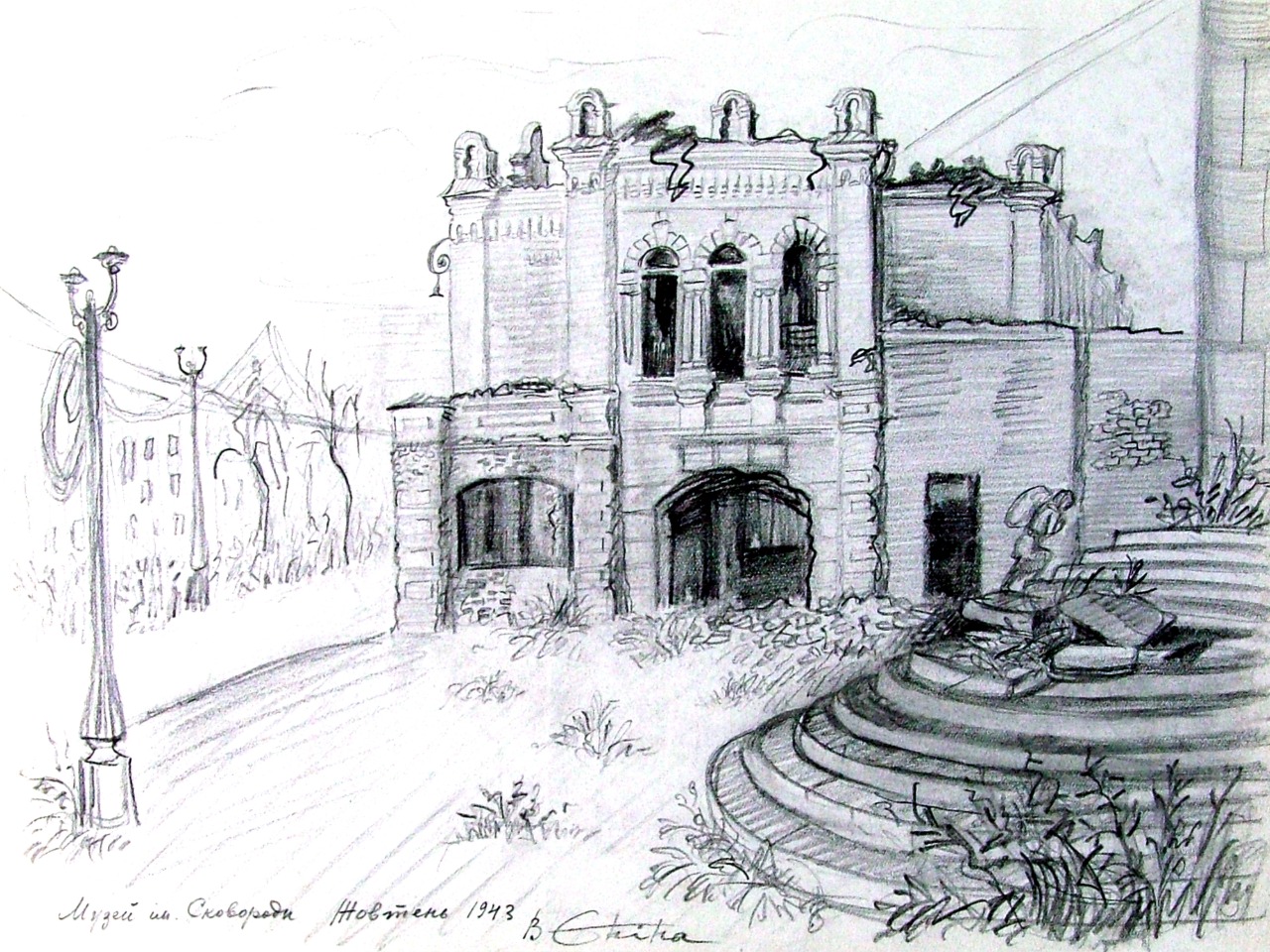 In the summer of 1944, the first collecting expedition was launched under the auspices of the State Historical Museum of the Ukrainian SSR. It was headed by writer Ahata Turchynska and included prominent writers, sculptors, and artists of that time. Among them was the Ukrainian writer, poet, graphic artist, and translator Vira Yenina. Following the 1st Tank Army commanded by Mykhailo Katukov, the expedition gathered more than 400 museum-worthy objects. The artist later recalled:“…We spent a whole month, from July 7 to August 7, on assignment. Following the tanks of General Katukov’s First Guards Army, we traveled in the second echelon across Western Ukraine, through the cities of Rivne, Dubno, Peremyshl, and Lviv… On the very first day, the army commander agreed to pose. While the army was partly at rest, he found the time. Pershudchev sculpted a portrait, Kostetsky painted in oils, and I drew in pencil…”