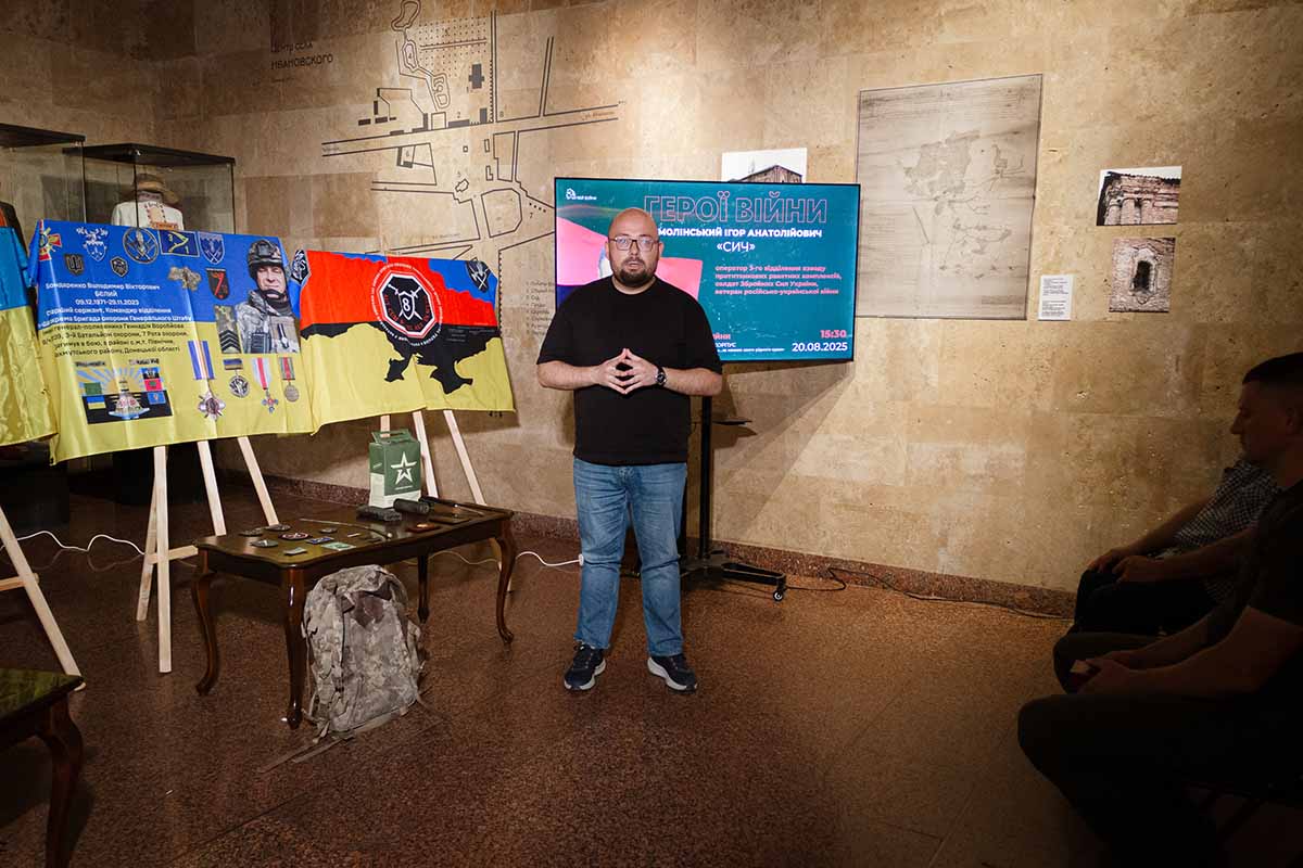 A meeting was held at the War Museum with soldier Ihor Yarmolinskyi, call sign “Sych,” operator of anti-tank missile systems of the 101st Brigade for the Protection of the General Staff named after Colonel-General Henadii Vorobiov, and veteran of the Russian-Ukrainian war. The event was moderated by War Museum researcher Valeriia Tsubenko.