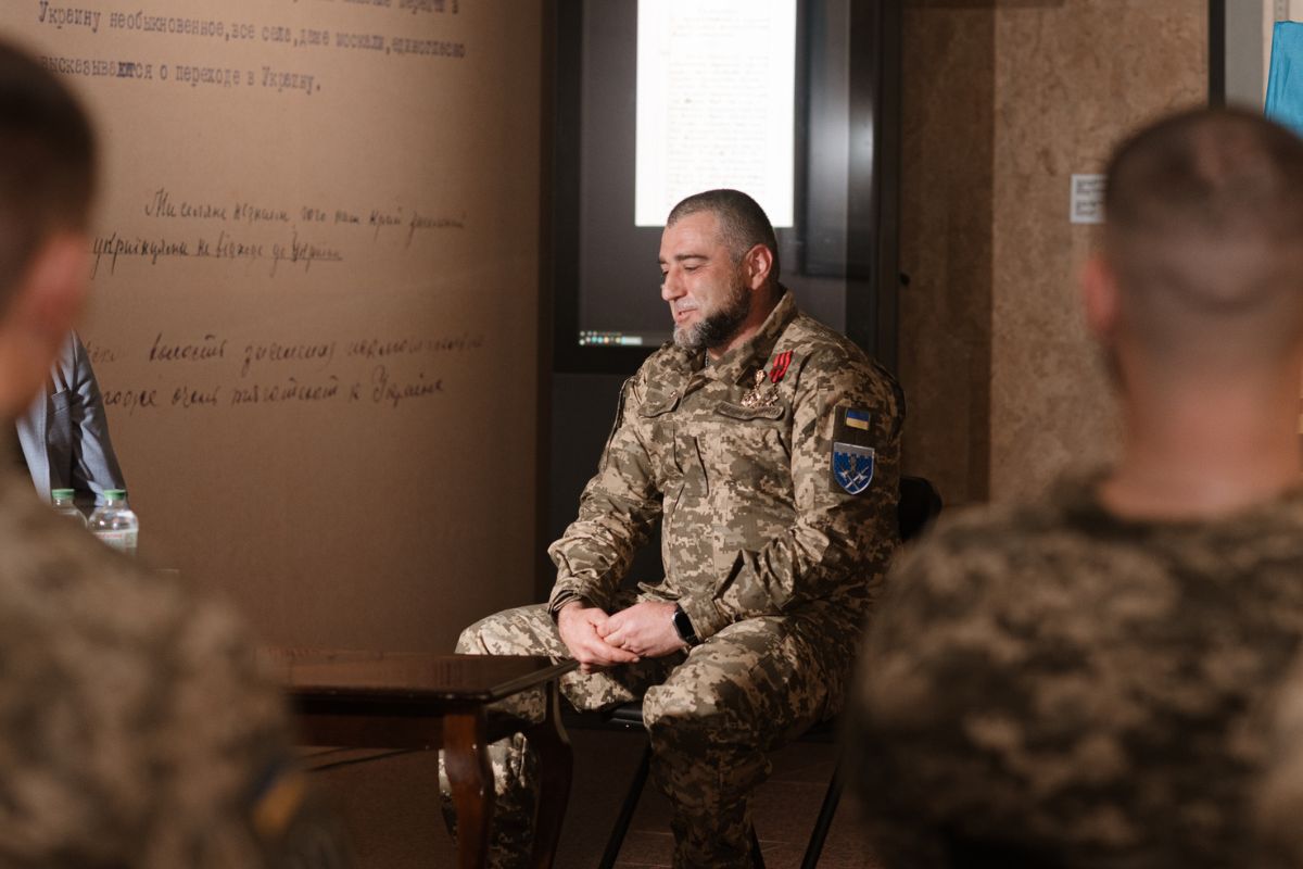 At the War Museum, a meeting took place with reconnaissance sapper Yevheniy Paziura with call sign “Did” of the 101st Brigade for the Protection of the General Staff named after Colonel-General Henadii Vorobiov. The event continued the series of living stories about the defenders – those who work every day on the front line.