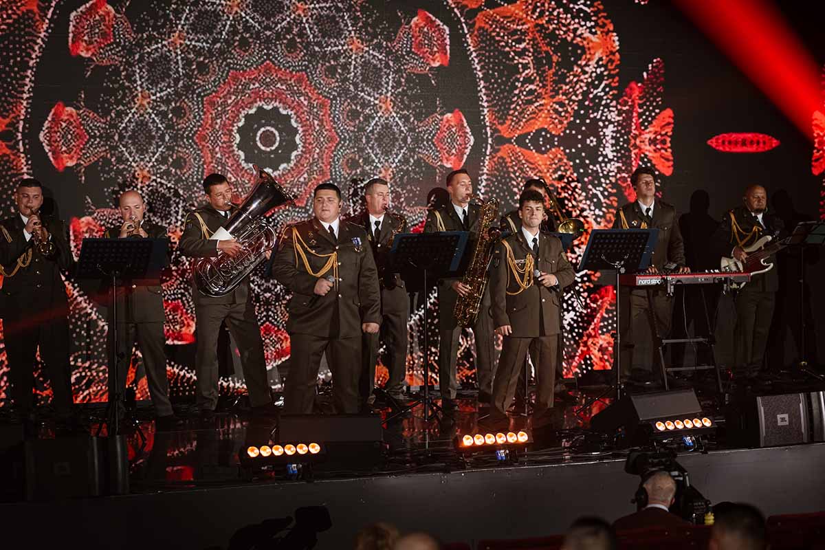 Performers included The National Exemplary Band of the Armed Forces of Ukraine, Band of the Kyiv Presidential Honor Guard Battalion, the Academic Song and Dance Ensemble of the National Guard of Ukraine, Sofiia Nersesian, Ptashkin, Artem Loik, Bak$, “Garda” Band, Bah.roma, Vlad Bulakh and Valeriia Okhtyrchanka. They performed their own compositions written during the war, as well as famous rifle songs from the times of the Ukrainian War of Independence and the Ukrainian Insurgent Army (UPA). The evening was hosted by Ukrainian actor and serviceman Harik Bircha.