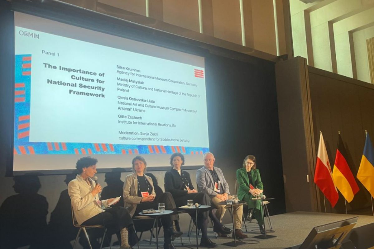 The second day of the Ukraine Culture Security Forum is underway in the German capital, Berlin. This international event was organized by the “OBMIN” Foundation with the support of more than 20 partners from governmental institutions, diplomatic missions, and non-governmental organizations from Germany, France, Poland, and Ukraine. The Forum has brought together government officials, diplomats, cultural figures, journalists, and opinion leaders to discuss the preservation of Ukraine’s cultural heritage during russia’s ongoing aggression, countering the threats it creates, and the acquisition of new functions by the cultural sphere as a component of national security.