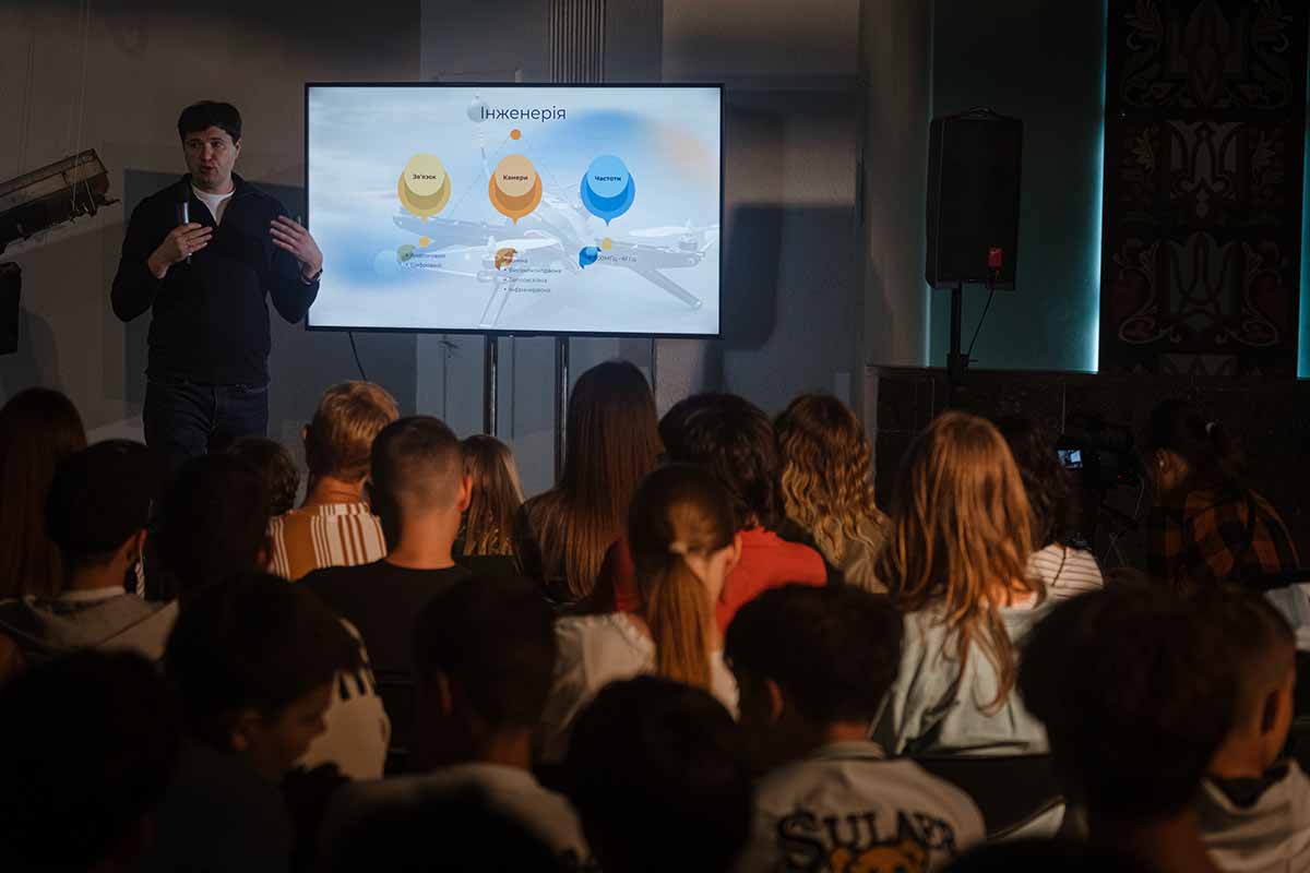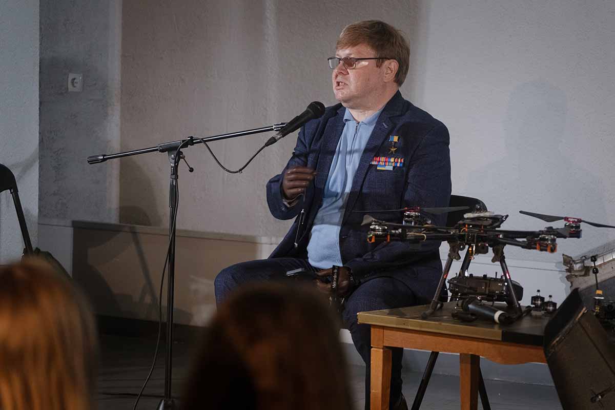 The moderator of the meeting, participant in the russian-Ukrainian war, volunteer, public figure and Hero of Ukraine Voldymyr Zhemchuhov, presented the volunteer project “Drones for the GUR” to the student. A manufacturer of FPV drones of the FPwin brand Oleksandr Berezhnyi also joined the event. He shared his personal motivation for creating this type of weapon and discussed how engineers, volunteers and military personnel join forces for a common goal.