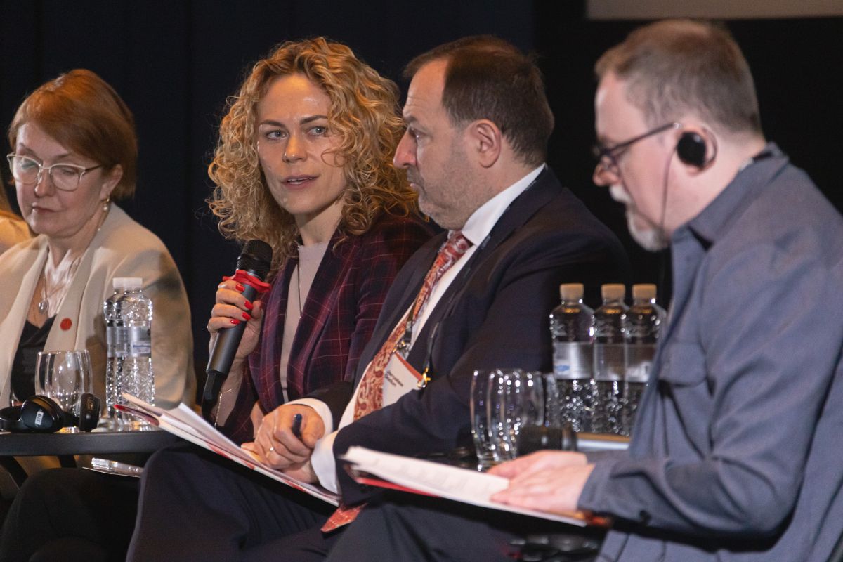 Заступник Міністра культури України Іван Вербицький та заступниця Голови Комітету Верховної Ради з питань гуманітарної та інформаційної політики Євгенія Кравчук підкреслили виклики, з якими зіштовхуються сьогодні представники культурної сфери у зв’язку з воєнними діями та терористичними атаками агресора, одна з яких відбулася напередодні відкриття конференції.
