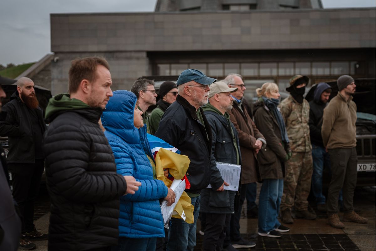 Біля підніжжя скульптури «Батьківщина-мати» норвезька волонтерська організація Ukrainian Freedom Convoys спільно з Демократичним тижнем Карпатського моря урочисто передали 16 автівок Збройним Силам України.
