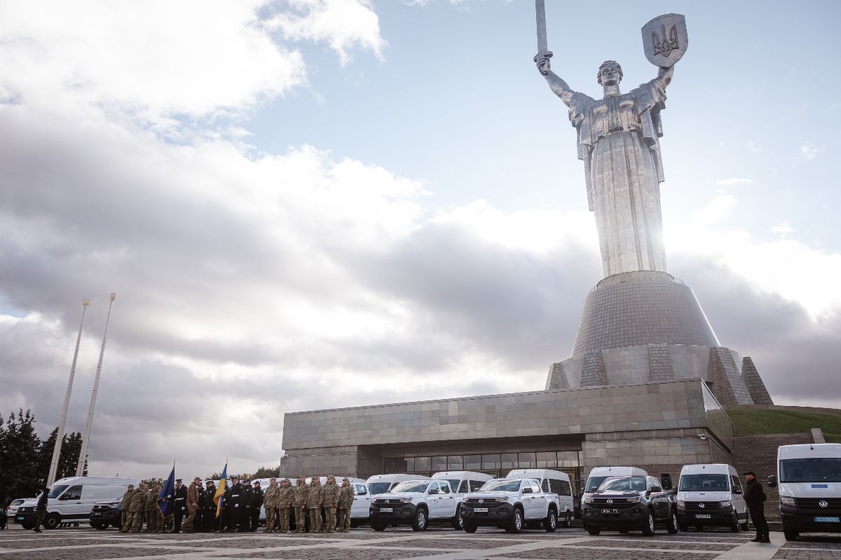 Представникам сектору безпеки та оборони України було передано 20 позашляховиків, придбаних за кошти Європейського Союзу в межах підтримки України. Захід відбувся на головній площі Музею війни біля підніжжя скульптури «Батьківщина-мати».
