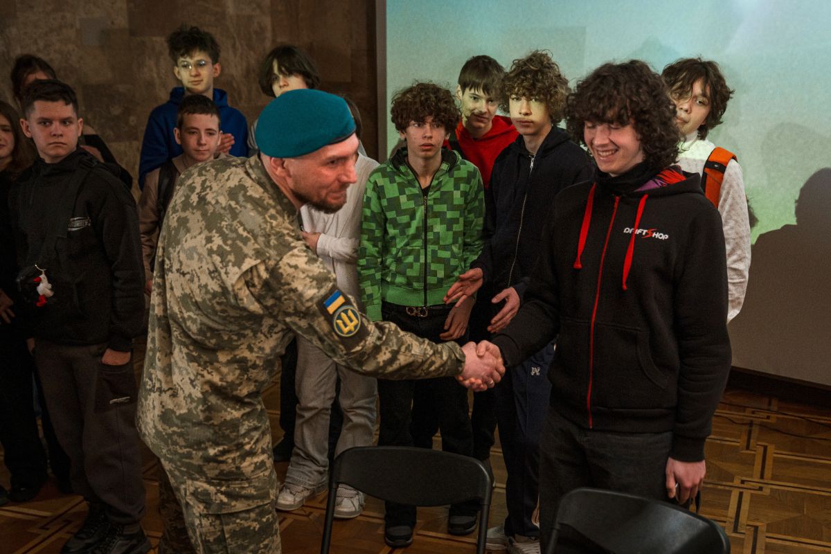 Артем Резонов на пам’ять про захід подарував Музею бойовий стяг свого підрозділу. Ця зустріч стала простором живого діалогу між тими, хто захищає країну, і тими, кому будувати її майбутнє. Відвага, особистий досвід і відповідальність захисників надихають.