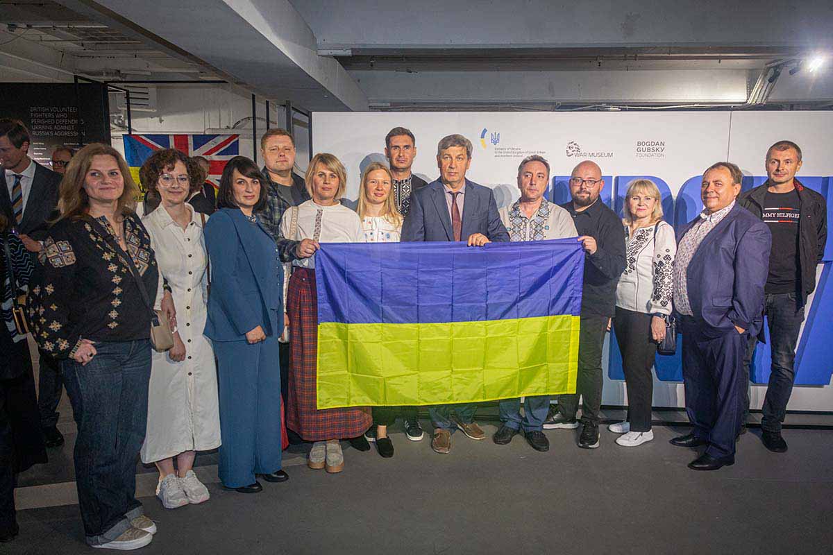 The official opening ceremony was attended by the families of fallen British volunteers who died fighting russian occupiers, military personnel, representatives of the British political establishment, diplomats, cultural figures from various countries, opinion leaders, and representatives of leading global media outlets. The British artist and reportage illustrator George Butler moderated event.