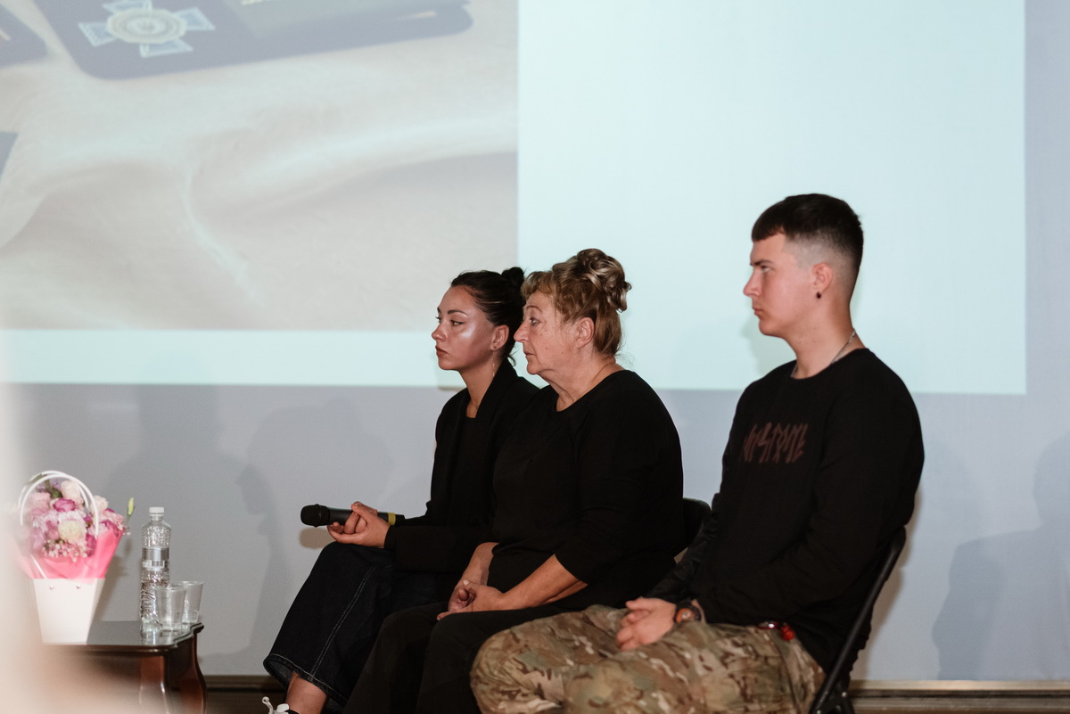 Orest’s nephew Liubomyr continued his uncle’s cause. Today, he serves in the Ukrainian Armed Forces. When asked by the event’s moderator, War Museum researcher Liubov Krupnyk, when he had made the decision to join the army, Liubomyr replied that it happened back in the eighth grade. As the defender admitted, he was deeply influenced by his grandfather Vasyl and his uncle Orest. “We grew up in a family of patriotic consciousness. I could always talk with Orest about the situation in the country, about the things that troubled me, and today I am endlessly grateful for that,” Liubomyr shared with the audience. In 2022, when he was 17, he helped build barricades and later joined the ‘Hospitallers’ as a volunteer. Liubomyr also carried on his family’s creative dynasty—he enrolled at the Kyiv National Ivan Karpovych Karpenko-Karyi Theatre, Cinema and Television University, dreaming of becoming an actor. But when it became too difficult to balance his studies and volunteering, he chose to defend Ukraine with a weapon in his hands. Liubomyr represents the fourth generation of patriots in the Bilinchuk family.
