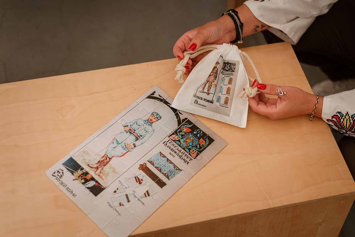 This year, the museum team invited children, teenagers, and families on a journey where history came alive through creative activities and unexpected formats. Together, we assembled puzzles of Ukrainian military uniforms from the period of the War of Independence, folded paper cranes as symbols of peace, created drawings inspired by famous paintings, decoded “censored letters,” explored the basics of animation, and even tried to identify artifacts by touch alone.