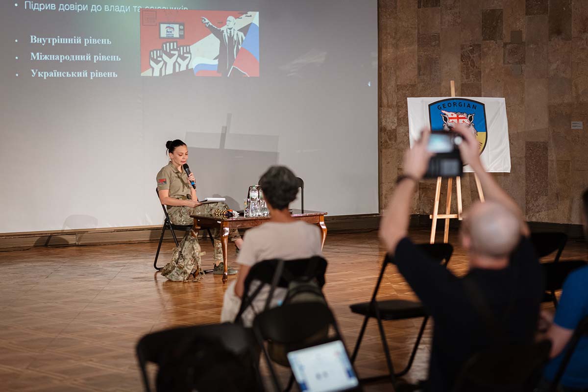 The War Museum hosted a lecture-discussion on information security and countering Russian propaganda. The speaker of the event was journalist Alya Goldmeikhier, author of a documentary about the Georgian Legion and head of its press service. In her presentation, she outlined the main instruments of Russian propaganda: state television channels, a network of controlled Telegram channels, troll factories, and bot farms. She emphasized that propaganda is not a chaotic flow of messages but a centralized system whose goal is not only to justify aggression but also to reshape the worldview of its audience. “Propaganda does not simply transmit messages — it creates notions of ‘one people,’ a ‘defensive war,’ or the ‘futility of resistance.’ Its task is to demoralize, divide society, and delegitimize Ukrainian identity,” Alya Goldmeikhier stressed.