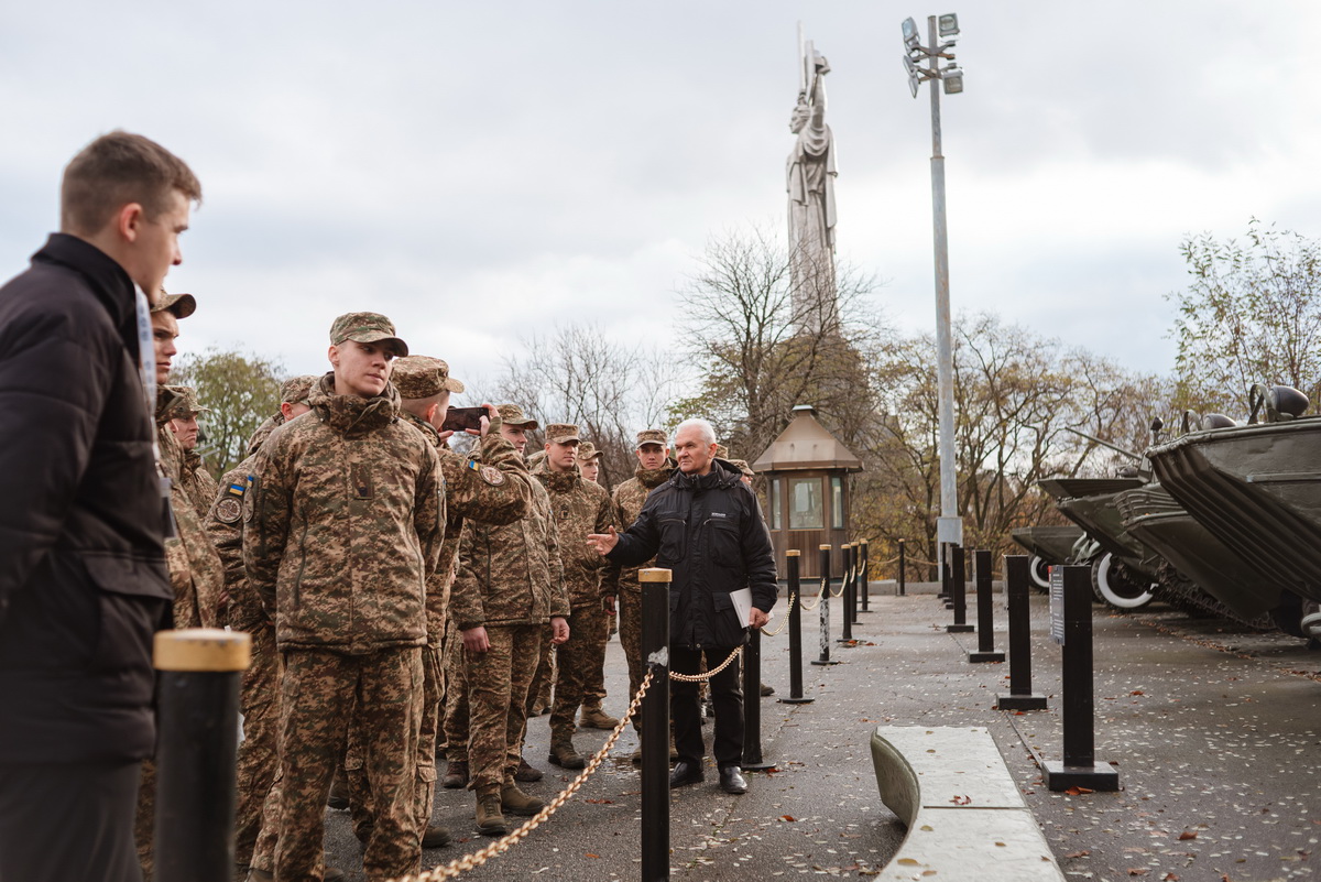 This November, six binary classes were held with the aim of supplementing Ukraine’s military education system with a museum component. In the exhibition spaces and on the grounds of the Memorial, accompanied by museum guides, the students study the course “History of Wars and Military Art.” The coordinator of the classes on behalf of the Museum was Svitlana Datsenko, Head of the Educational Outreach Department, and on behalf of the Institute – Professor Volodymyr Zelenyi.