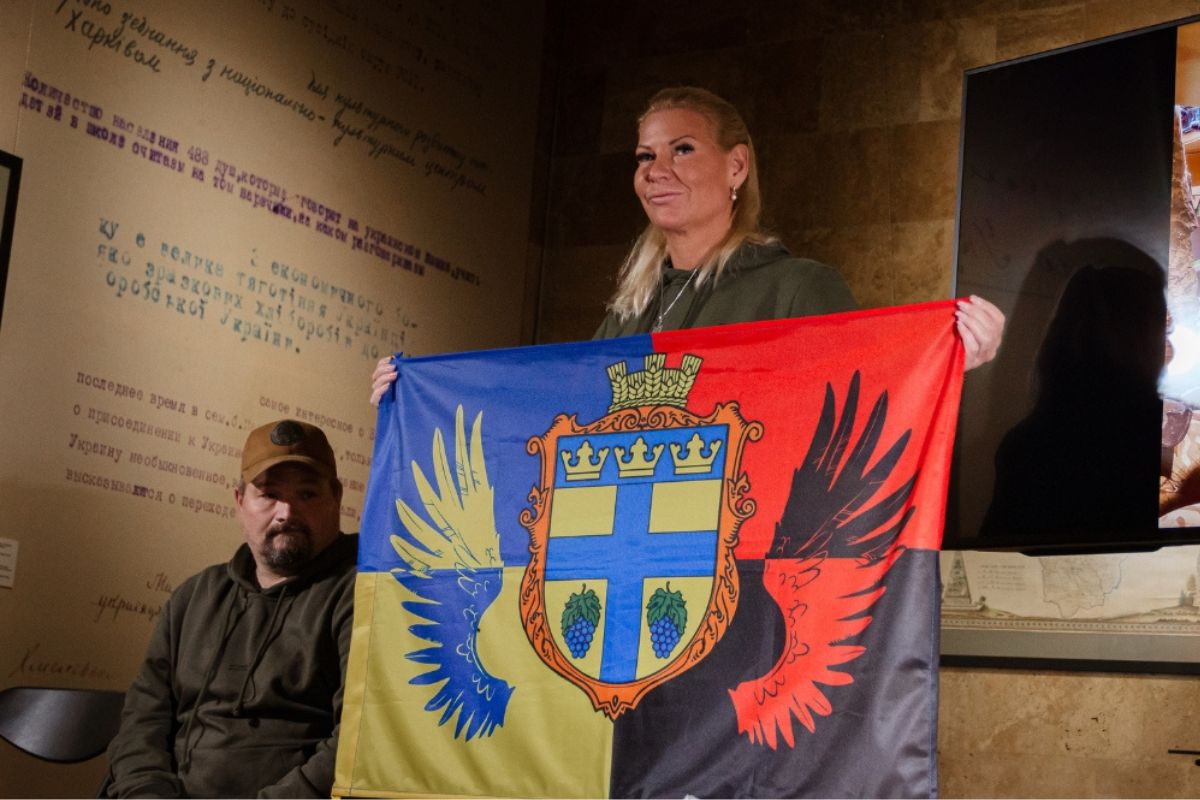 Carolina and Christopher donated artifacts to the War Museum’s collection—personal belongings, insignia, uniform elements, objects, and a flag from the village of Gammalsvenskby (Staroshvedske) in the Kherson region. This is an 18th-century Swedish settlement in Ukraine, which, as it turned out, is the native village of Carolina Nordengrip’s grandmother. For Carolina, it was particularly painful to see the consequences of the russian occupation on her grandmother’s native village.