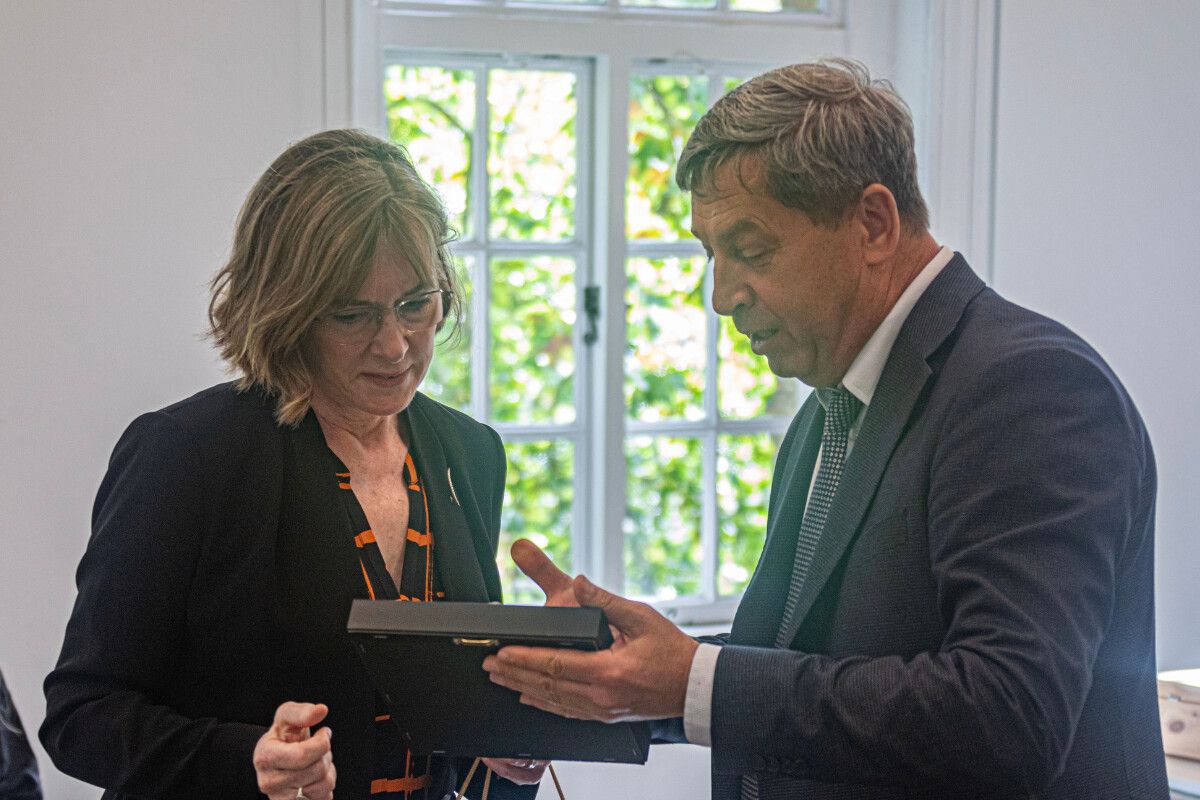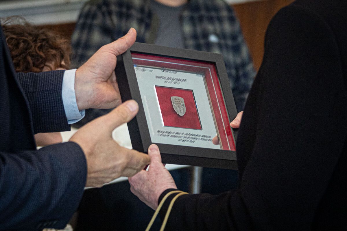 The Director General of the Imperial War Museum, Caro Howell, attended the presentation of the “Indomitable Ukraine” exhibition and, the very next day, welcomed the team of the War Museum together with her colleagues at her institution.British specialists shared with their counterparts from Kyiv their experience in curatorial, collection management, and educational work. As a token of remembrance of this meeting, Yurii Savchuk, Director General of the War Museum, presented the head of the British institution with an exclusive souvenir — a pin made from the steel of the trident on the "Motherland Monument".