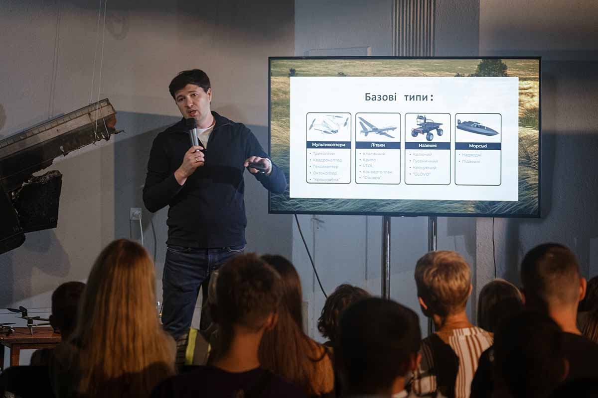 The moderator of the meeting, participant in the russian-Ukrainian war, volunteer, public figure and Hero of Ukraine Voldymyr Zhemchuhov, presented the volunteer project “Drones for the GUR” to the student. A manufacturer of FPV drones of the FPwin brand Oleksandr Berezhnyi also joined the event. He shared his personal motivation for creating this type of weapon and discussed how engineers, volunteers and military personnel join forces for a common goal.