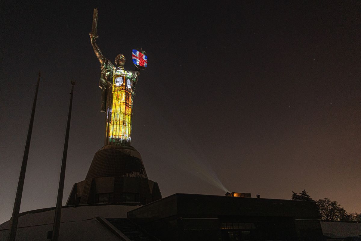 З цієї нагоди монумент «Батьківщина-мати» засяяв барвами прапорів Великої Британії та України, а також логотипом 100-річного партнерства двох держав.