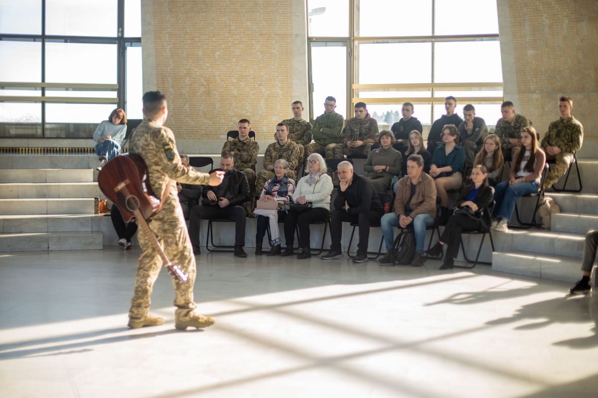 У Музеї під звуки гітари лунали авторські вірші, батярські пісні, кіномелодії та унікальні словоспіви, які залишили слід у серцях. Дмитро Лінартович, виконуючи свої твори, провів нас бойовими шляхами, познайомив з побратимами, подякував волонтерам і віддав шану українським добровольцям.