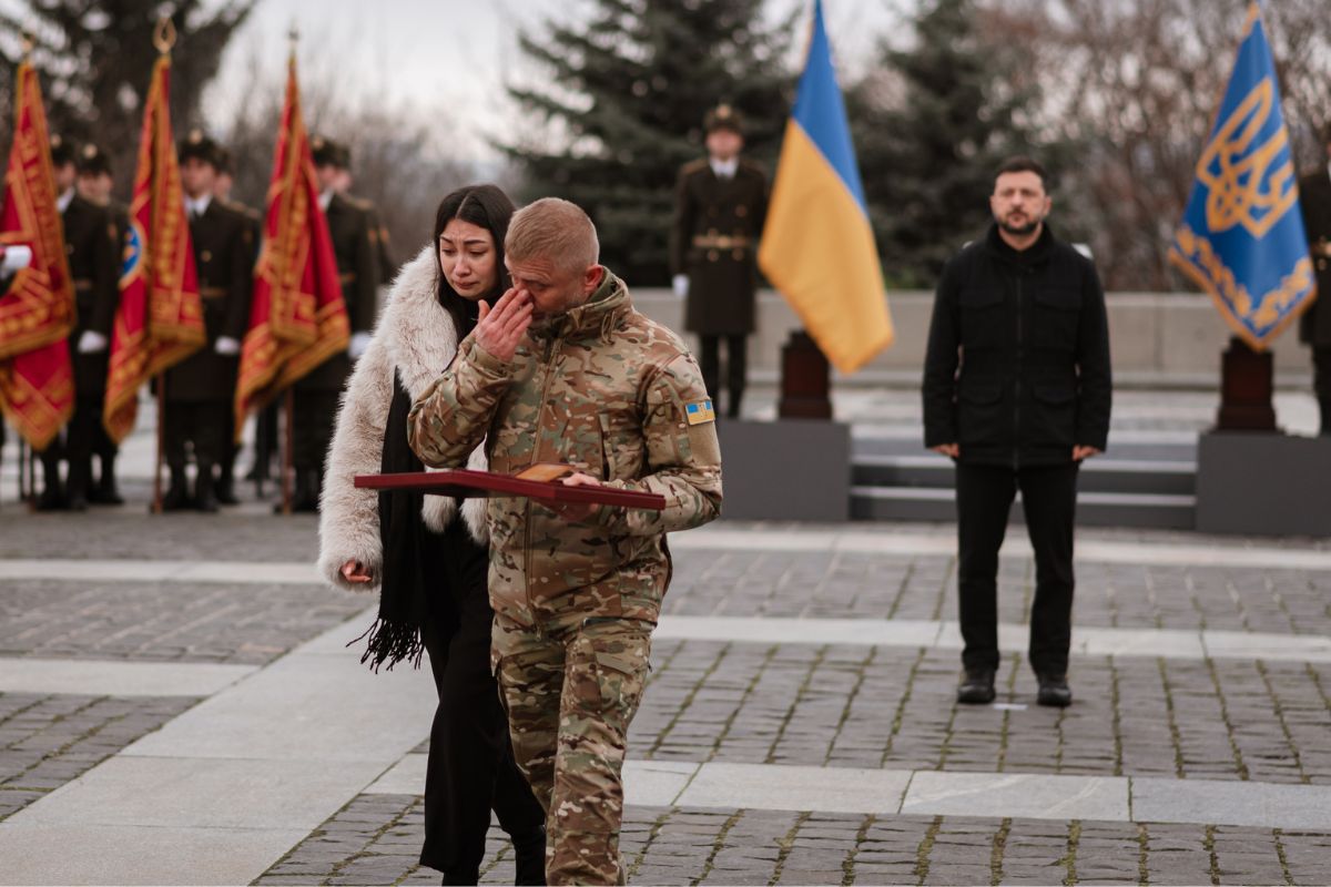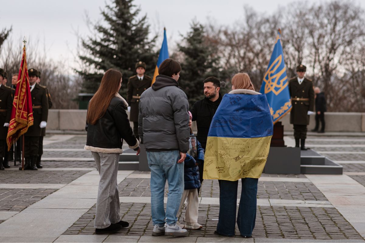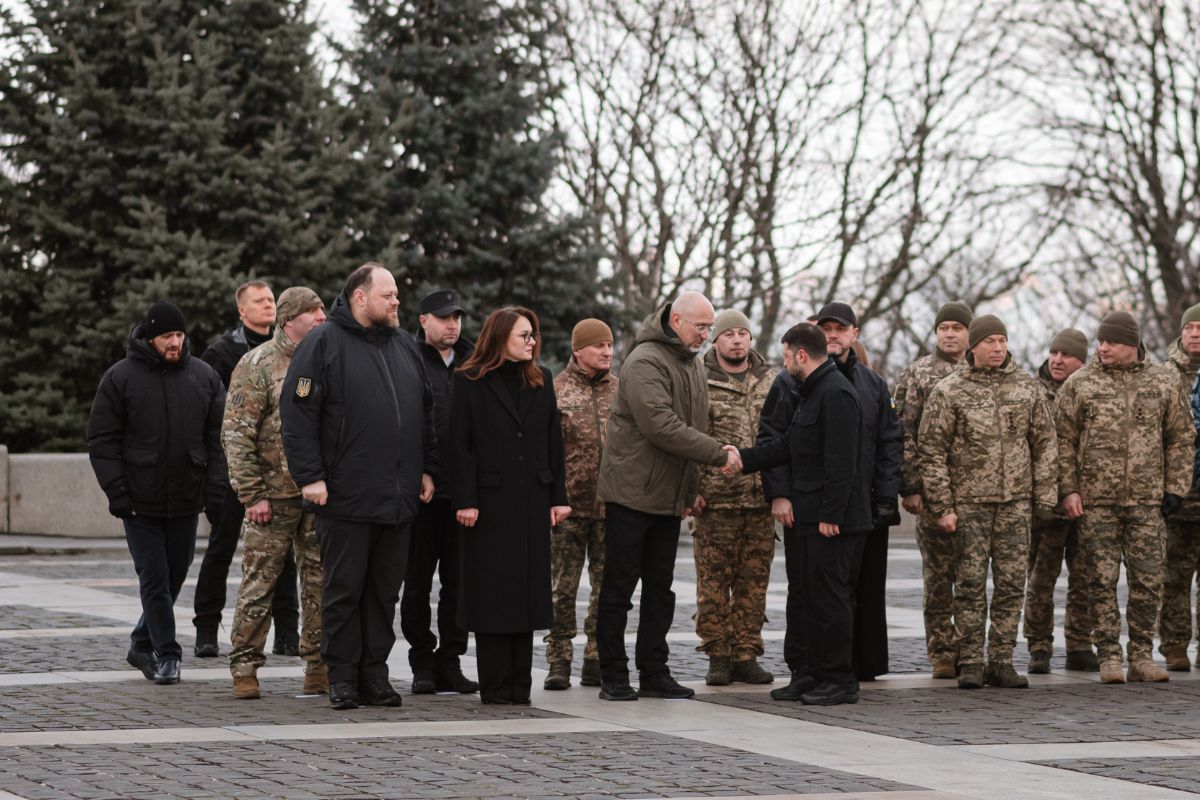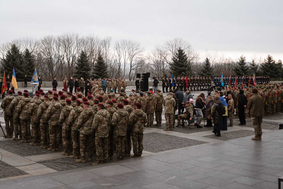 Очільник держави вручив бойові прапори командирам 141-ї окремої механізованої бригади, 414-ї окремої бригади безпілотних систем «Птахи Мадяра», 425-го окремого штурмового полку «Скеля» та 108-го окремого штурмового батальйону «Вовки Да Вінчі» 59-ї окремої штурмової бригади безпілотних систем імені Якова Гандзюка. А командиру 42-ї окремої механізованої бригади вручив стрічку з її найменуванням на честь Героя України Валерія Гудзя.