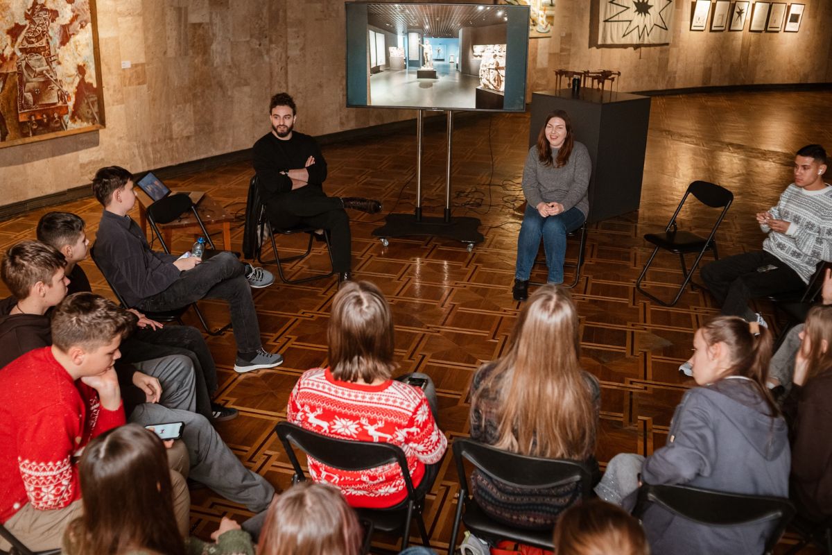 Напередодні різдвяних канікул він зустрівся з учнями Liko-School, які завітали на екскурсію до Музею. У просторі виставки «Війна: зворотна перспектива» Алекс обговорив зі школярами важливість волонтерства, свій досвід роботи в Аквитанському музеї, та розповів про свою мотивацію приїхати до України під час активної війни.