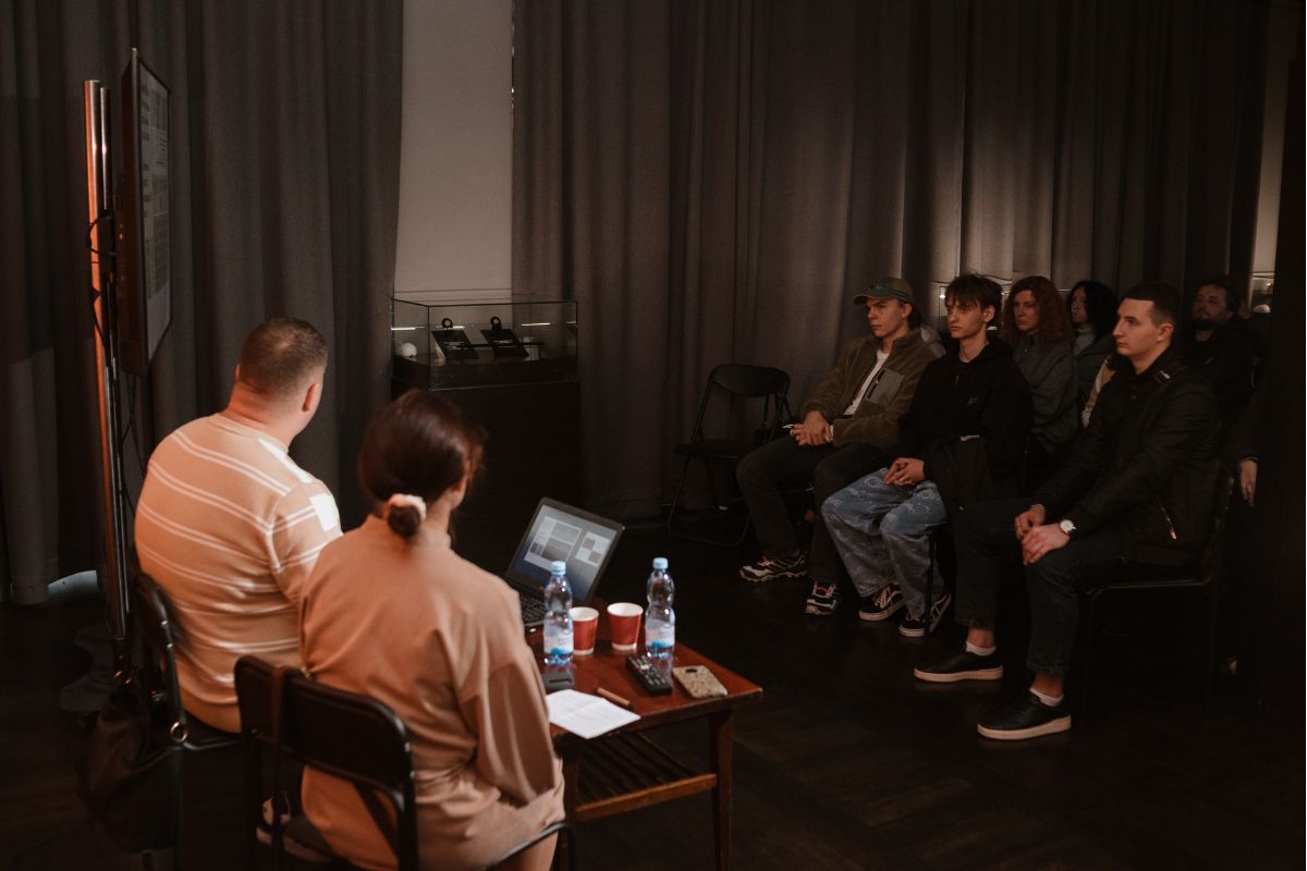 The event was attended by students of Vadym Hetman Kyiv National Economic University and Mykhailo Boichuk Kyiv State Academy of Decorative and Applied Arts and Design. They actively discussed the issue of preserving specimens of the Ukrainian People’s Republic currency – karbovanets, hryvnias, and shah postage stamps, some of which are now kept in the Museum of the War. The exhibition “Symbol on the Shield” also features seals of the Ukrainian People’s Republic financial institutions from the Sheremetiev Museum collection.