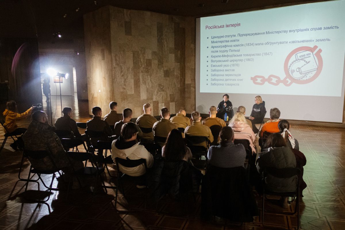 On the occasion of the Day of Ukrainian Literature and Language, the War Museum hosted the presentation of the educational project “Linguocide.” The project’s author, educator, and co-founder of the NGO “Valentnist. Rethinking” Valentyna Merzhyievska, introduced the history and concept of the initiative, which explores and illustrates the policy of russification and the suppression of the Ukrainian language from the 17th century to the present day.