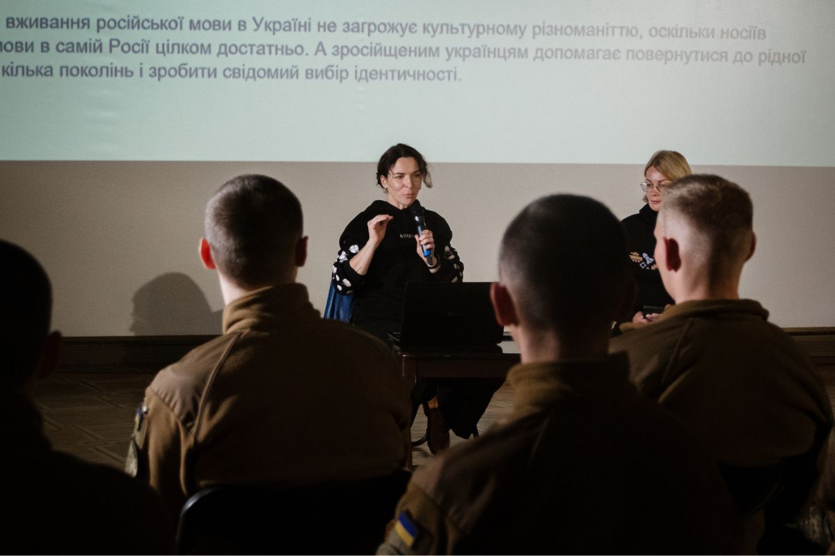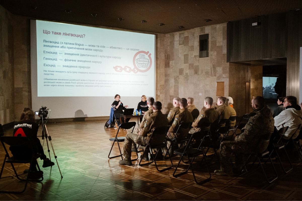 During the presentation, Valentyna also spoke about the very phenomenon of linguocide, which Ukrainians have endured for centuries — the deliberate eradication of language as a core element of national identity.