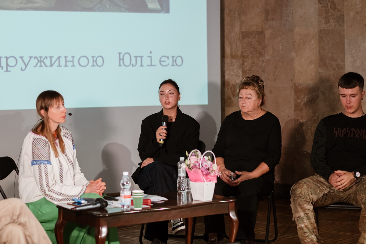 Orest’s nephew Liubomyr continued his uncle’s cause. Today, he serves in the Ukrainian Armed Forces. When asked by the event’s moderator, War Museum researcher Liubov Krupnyk, when he had made the decision to join the army, Liubomyr replied that it happened back in the eighth grade. As the defender admitted, he was deeply influenced by his grandfather Vasyl and his uncle Orest. “We grew up in a family of patriotic consciousness. I could always talk with Orest about the situation in the country, about the things that troubled me, and today I am endlessly grateful for that,” Liubomyr shared with the audience. In 2022, when he was 17, he helped build barricades and later joined the ‘Hospitallers’ as a volunteer. Liubomyr also carried on his family’s creative dynasty—he enrolled at the Kyiv National Ivan Karpovych Karpenko-Karyi Theatre, Cinema and Television University, dreaming of becoming an actor. But when it became too difficult to balance his studies and volunteering, he chose to defend Ukraine with a weapon in his hands. Liubomyr represents the fourth generation of patriots in the Bilinchuk family.